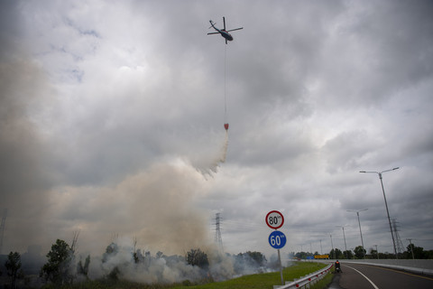 Saat pemadaman dilakukan, dua helikopter milik BNPB ikut diturunkan untuk memadamkan api dari udara atau biasa disebut dengan water bombing.