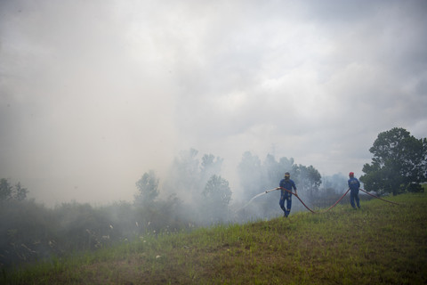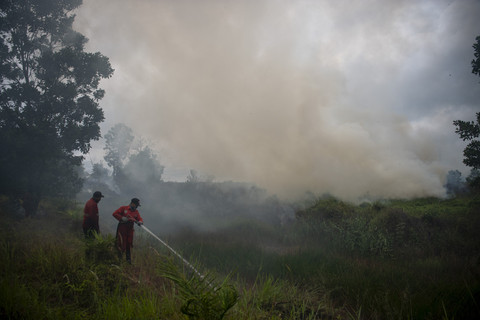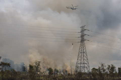 Petugas dari Manggala Agni Daops Banyuasin berupaya melakukan pemadaman kebakaran lahan yang terjadi di sisi gerbang tol rambutan Jalan Tol Trans Sumatera (JTTS) ruas Palembang-Indralaya (Palindra) di Desa Rambutan, Ogan Ilir (OI), Sumatera Selatan, Minggu (21/9/2025). Foto: Nova Wahyudi/ANTARA FOTOKebakaran lahan yang terjadi sejak Sabtu (20/9) tersebut berhasil dipadamkan oleh petugas gabungan dari Manggala Agni Daops Banyuasin, Manggala Agni Daops Lahat, Manggala Agni Daops OKI, dan BPBD Kab Ogan Ilir (OI). Foto: Nova Wahyudi/ANTARA FOTOAdapun saat pemadaman dilakukan, dua helikopter milik BNPB ikut diturunkan untuk memadamkan api dari udara atau biasa disebut dengan water bombing. Foto: Nova Wahyudi/ANTARA FOTONamun terkait dengan luasan lahan yang terbakar masih dalam proses pendataan lebih lanjut. Foto: Nova Wahyudi/ANTARA FOTOFoto: Nova Wahyudi/ANTARA FOTO